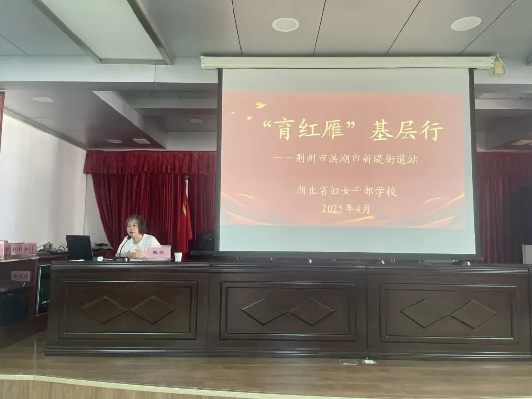 为贯彻落实习近平总书记关于加强高素质专业化妇联干部队伍建设重要指示精神,提升基层妇联干部队伍政治素养和履职能力,4月10日,市妇联联合省妇女干部学校开展“育红雁”基层行——送培训下基层活动,新堤街道、洪湖经济开发区各村(社区)妇联主席、妇联执委100余人参加培训。